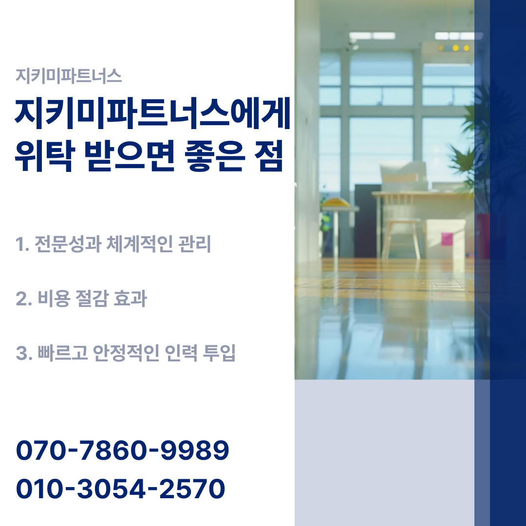 전문업체와 함께한다면 기업은 인력 관리 부담을 줄이고, 비용을 절감하며, 운영 안정성을 확보할 수 있습니다.