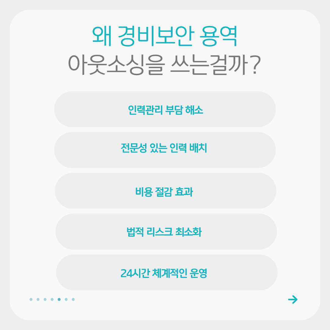 경비보안•청소미화•시설종합관리 서비스를 전문적으로 제공하고 있는 업체입니다.