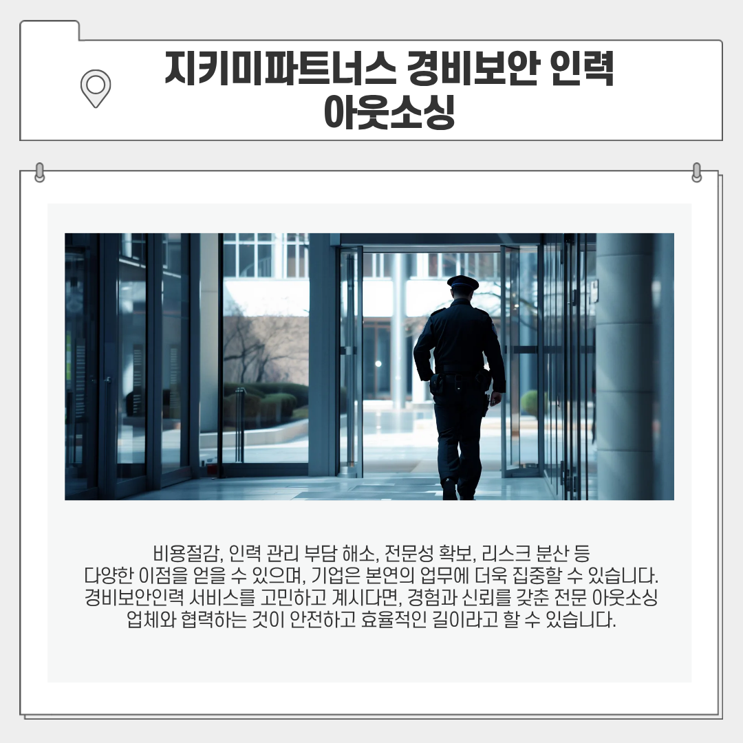보다 안정적인 운영을 원한다면, 이제는 지키미파트너스와 같은 시설 경비 인력도급 아웃소싱 전문 업체에 위탁하는 선택이 필요합니다.